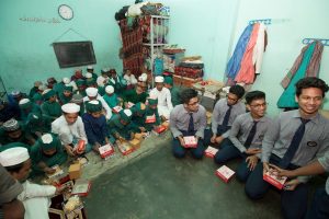Presidency students of AS Level visited Chandranagar Noorani Madrasa Orphanage at Baizid, Chittagong on March 25, 2019. There were around 123 orphans aged from 3 years to 14 years with 10 teachers. Our students brought food, drinking water, pens, copies, etc. for the orphans and spent some time with them to gain a life long experience on the livelihood and education opportunities of the orphans.